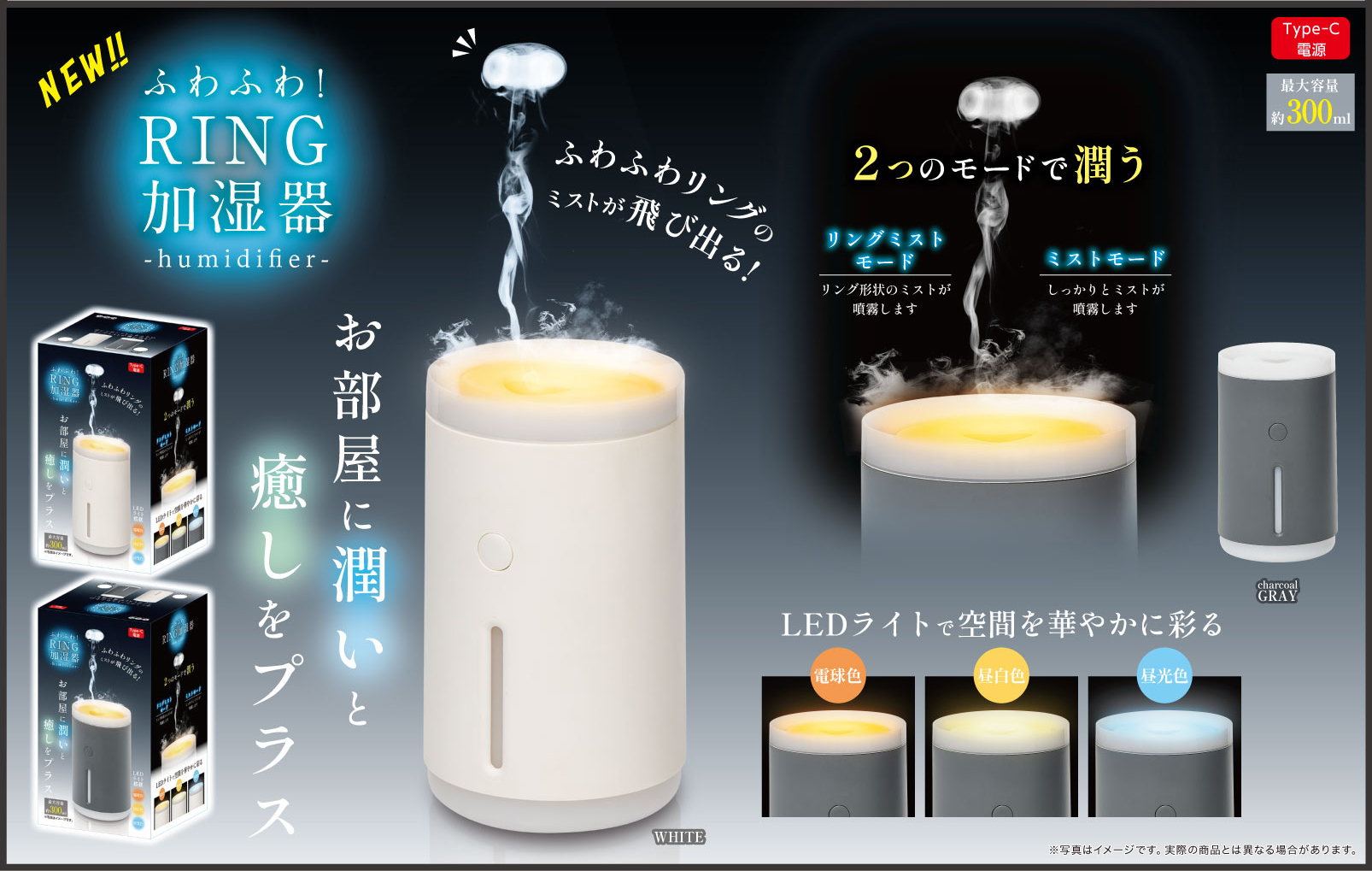 ふわふわリングのミストが飛び出す!ふわふわ! リング加湿器